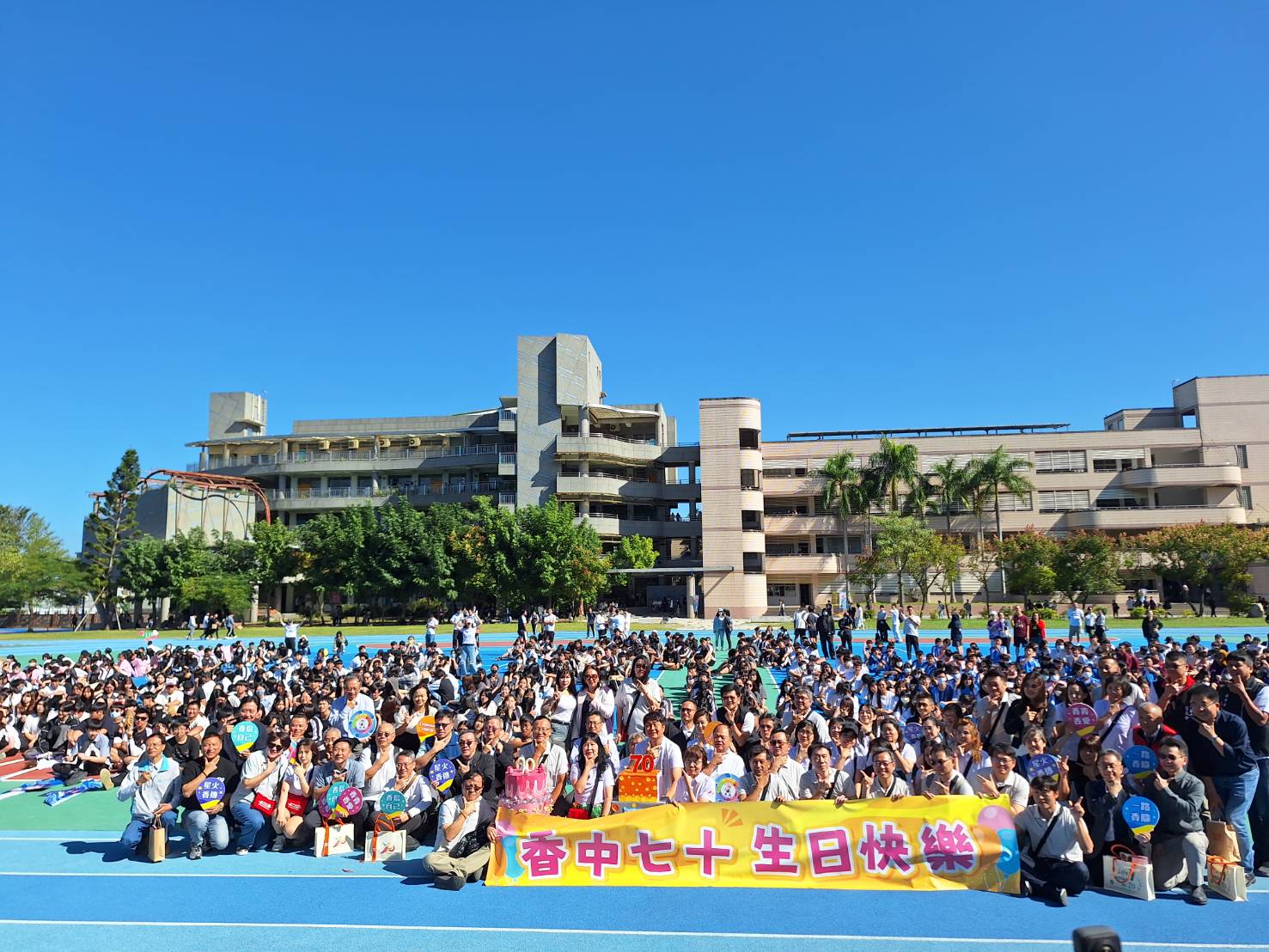 今日七十週年校慶暨園遊會,特地在嶄新的通學步道、戶外球場、操場與落羽松大道上舉辦,透過學生精心準備的進場表演、團結活力大會舞、校慶海報設計、社團展演、國際教育、閱讀挑戰與教學成果展等系列活動,展現近年來香山高中在全球永續議題、AI科技進展及十二年國教新課綱推動下,所發展之多元特色課程的豐碩成果,以及香中學子們活力創意的表現。
