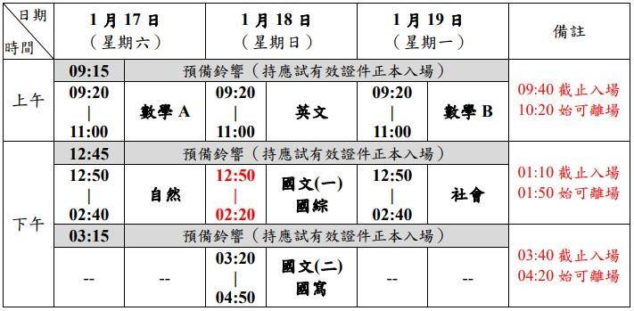 【1 月 16 日(五)下午 2 時至 4 時開放查看學測試場及座位】