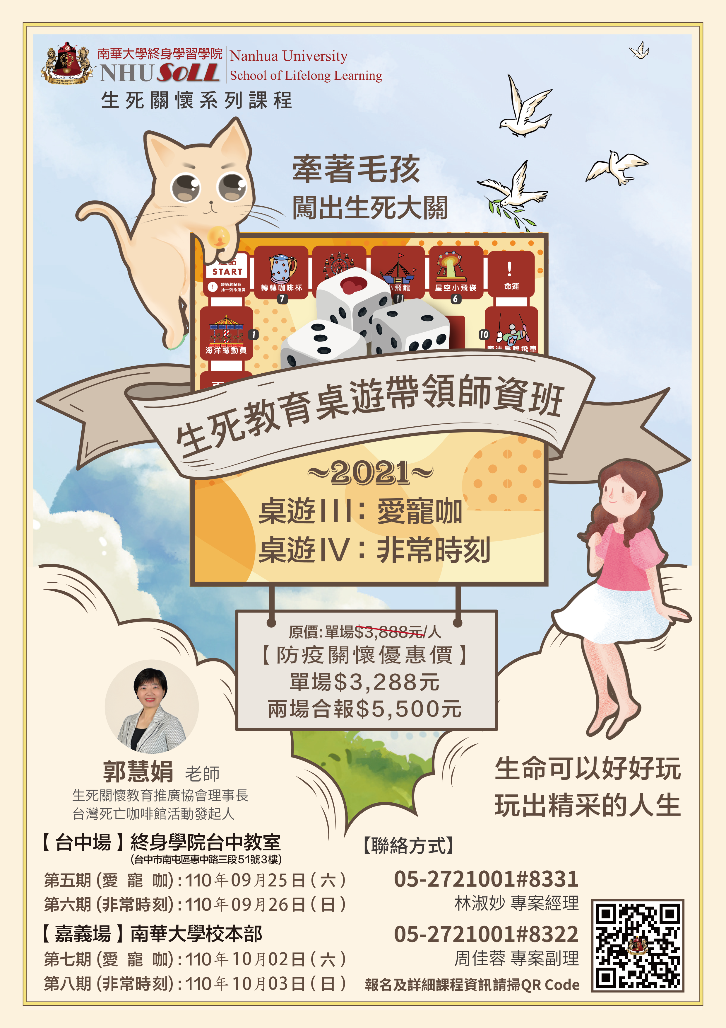 五、 | 防疫關懷優惠價:單場新臺幣3,288元/人、兩場合報新臺幣5,500元/人。(以上內含午餐、課程教具,不含桌遊) |