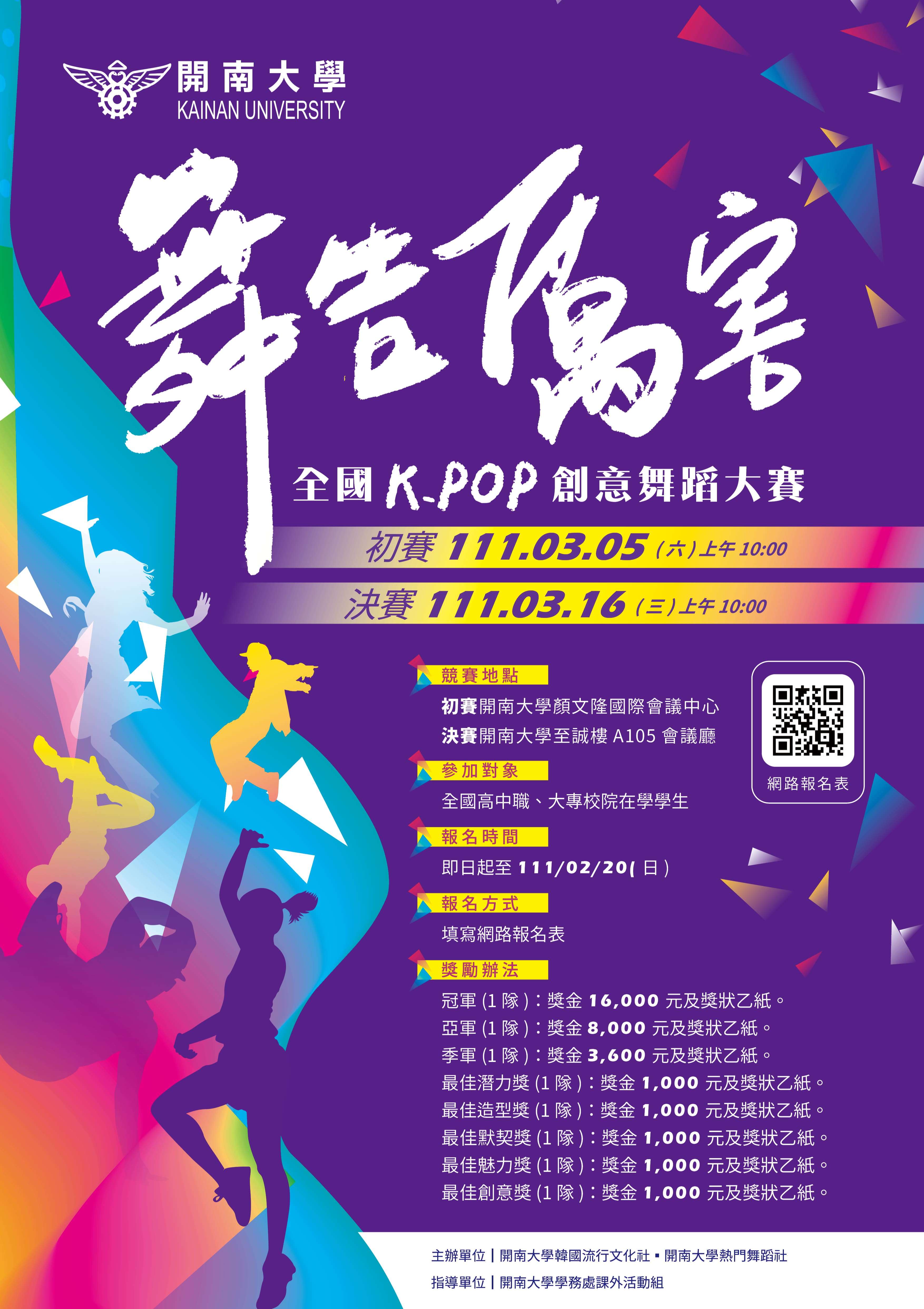 一、活動名稱:「舞告厲害」開南大學全國K-POP創意舞蹈大賽。