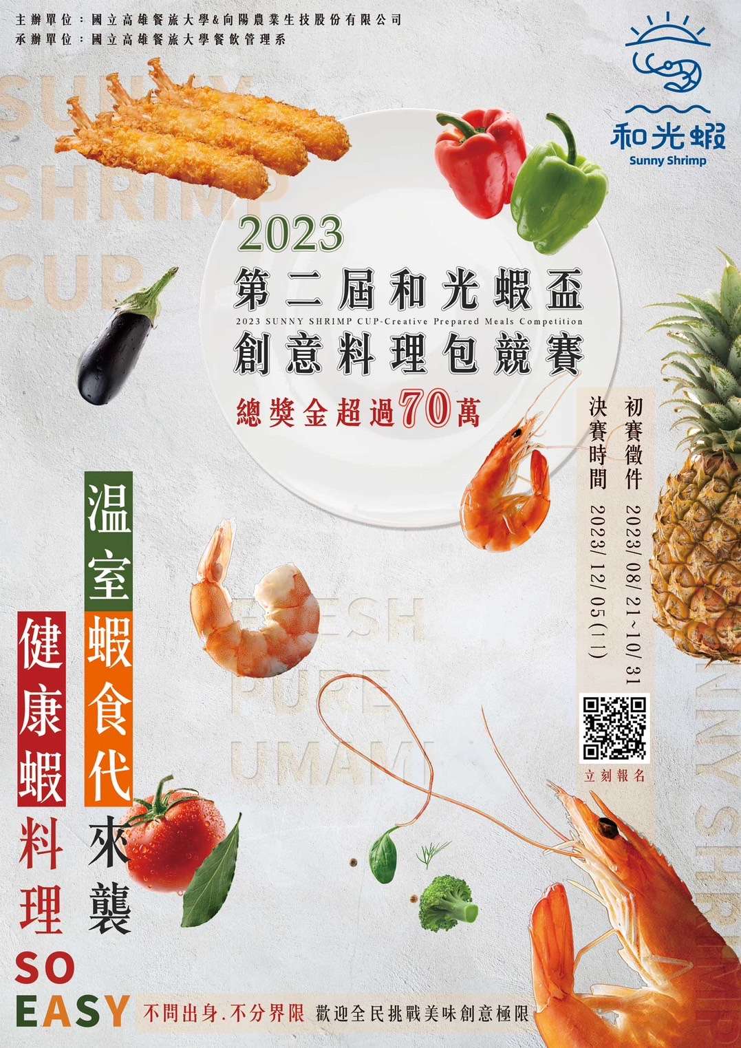 轉國立高雄餐旅大學與向陽農業生技股份有限公司共同舉辦「第二屆和光蝦盃創意料理包競賽 "溫室蝦時代來襲 健康蝦料理SO EASY”」活動,詳情請參照附件,歡迎踴躍報名參加。