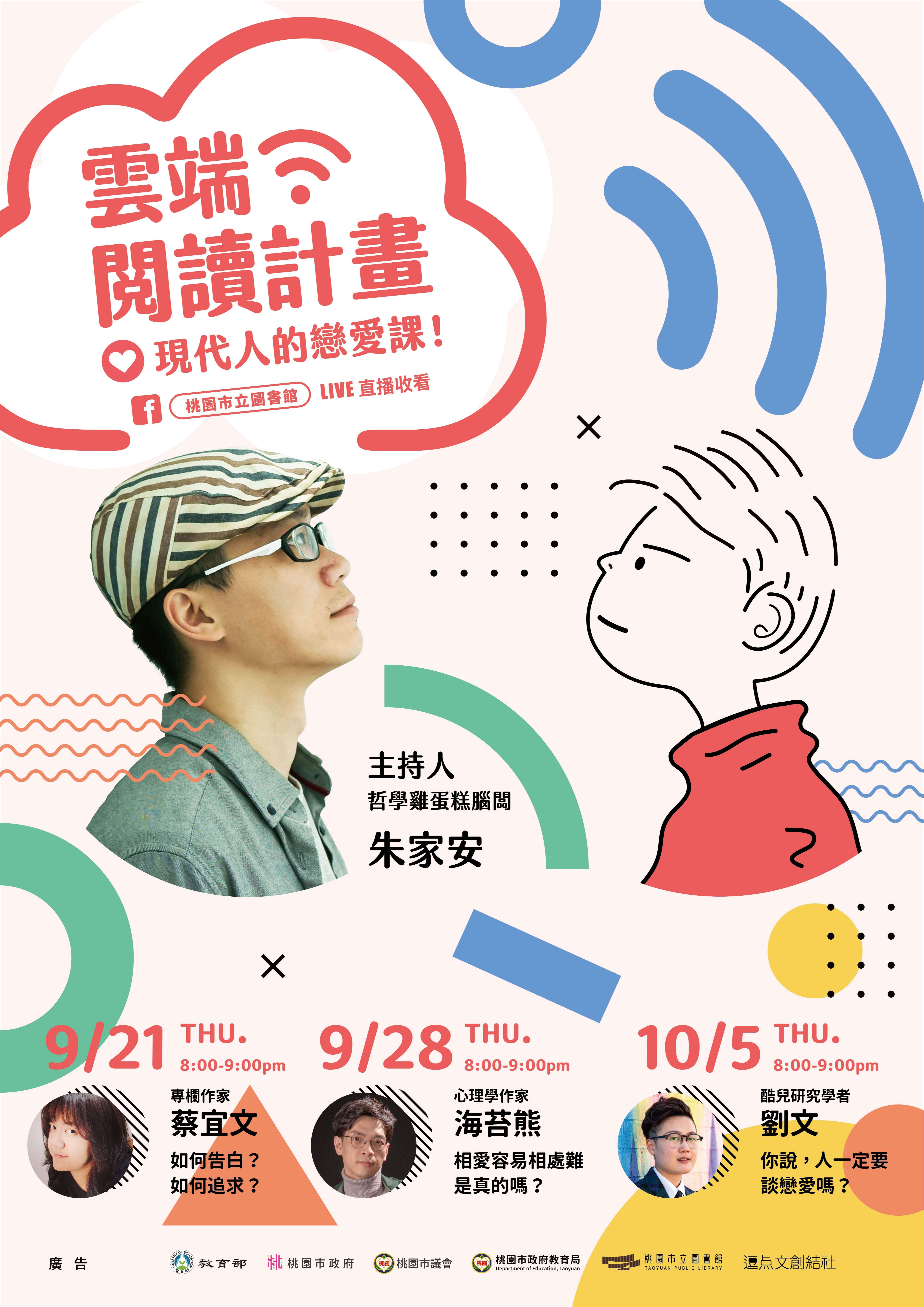 一、本講座透過本館臉書粉絲專頁直播,適合成人與高中生參與,將由主持人朱家安,以及知名學者、文化評論者、心理學作家一同分享,帶領大家走進有趣的哲學生活、打好在網路與實際生活中與他人良好溝通的基礎。