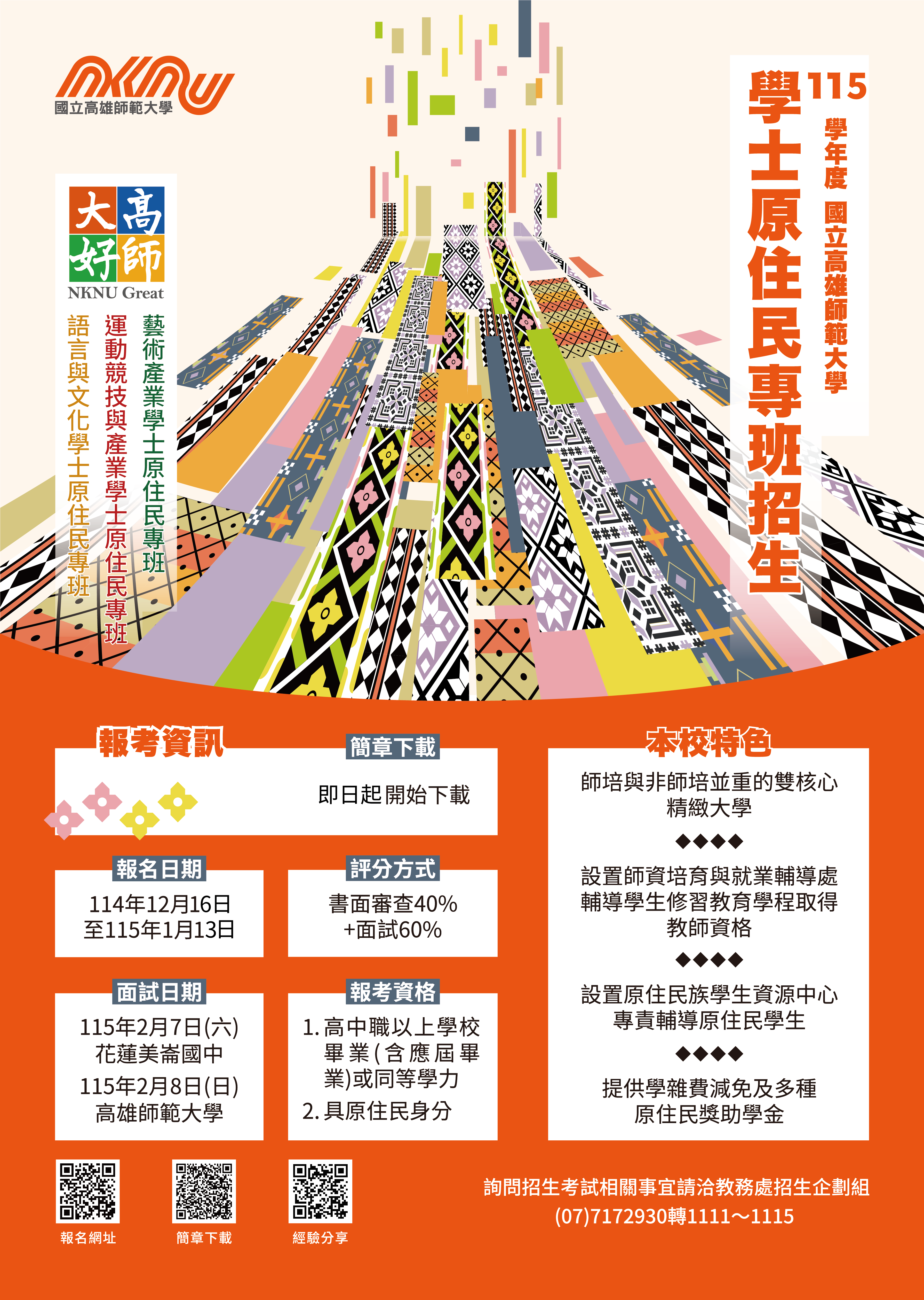 詳細招生資訊請參閱高師大教務處招生企劃組網頁,