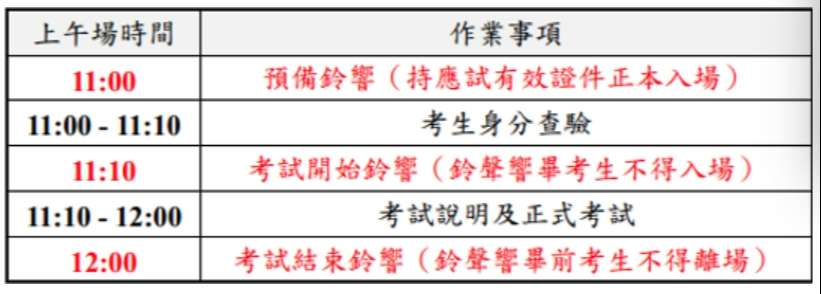 考試當日務必攜帶應試有效證件正本,並請提早出門