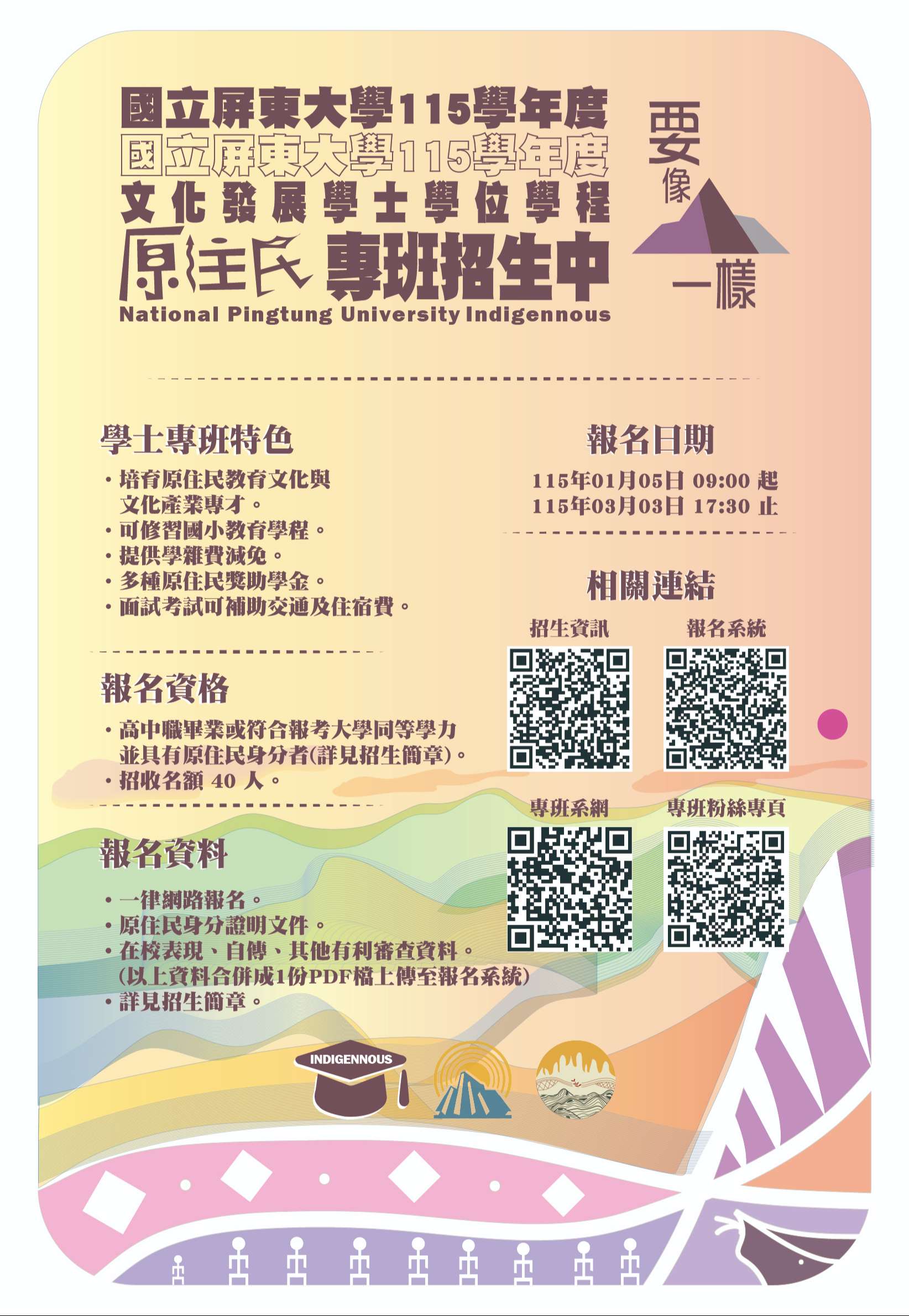 網路報名日期自115年1月5日上午9時至115年3月3日下午5時30分止,